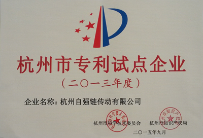 日前,杭州市科學(xué)技術(shù)委員會、杭州市知識產(chǎn)權(quán)局認(rèn)定45家企業(yè)為“杭州市專利示范企業(yè)”,230家企業(yè)為“杭州市專利試點(diǎn)企業(yè)”。東華子公司杭州自強(qiáng)鏈傳動有限公司被認(rèn)定為 “杭州市專利試點(diǎn)企業(yè)”。
