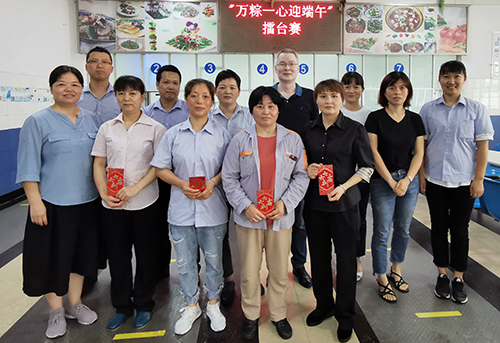 經(jīng)過5輪激烈角逐,評委對所有粽子進(jìn)行外觀、重量、數(shù)量等及提前提交的樣品的味道進(jìn)行公平公正的評分,最終華冬英、陸鳳丹、潘淑君、韓木珍、祝順明、李雪花分獲前六名。工會主席魯小林向獲獎(jiǎng)員工頒發(fā)了獎(jiǎng)金并合影留念。