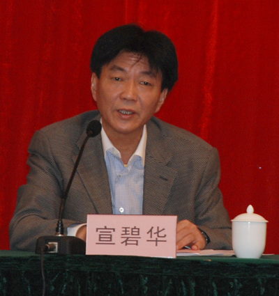 會議對新一屆理事會班子進行了換屆選舉,經過到會的百余家企業代表以“海選”的形式無記名投票和公開、公平、公正的選舉程序,宣碧華以高票當選新一屆理事長。同時選舉產生了副理事長18名、理事22名。由理事長提議,確定了新一屆理事會名譽理事長為朱善祥、顧問李文虎。同時,提議魯小林為秘書長等協會班子成員。隨后,宣碧華理事長作了八屆理事會工作思路的重要講話。