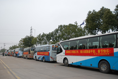 今年春節(jié),公司在安徽六安、江西廣豐、河南鄭州、湖北武漢、湖南長(zhǎng)沙等員工較集中的方向設(shè)置了10條線路的包車,除利用其他方式回鄉(xiāng)的員工,共有365人乘坐包車。在傳動(dòng)鏈?zhǔn)聵I(yè)部工作的江西員工袁根英說,以前每年回家都很難買到火車票,而且要到很遠(yuǎn)的蕭山南站坐火車很不方便,自從近年公司組織包車送他們回家后,她說又方便又省心了,感覺很溫暖,企業(yè)為員工考慮的很周到,感激之情溢于言表。