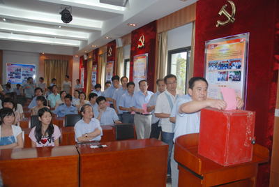 本屆黨委換屆選舉,除出國、工作調動及生病外,到會參與選舉的正式黨員共65名。經(jīng)過廣大黨員嚴肅認真的無記名選舉、投票、監(jiān)票、唱票等公平公正的選舉程序。魯小林同志高票當選本屆黨委書記。徐美珍、廖杭州、趙鵬飛、 蔣錫林當選為黨委委員。