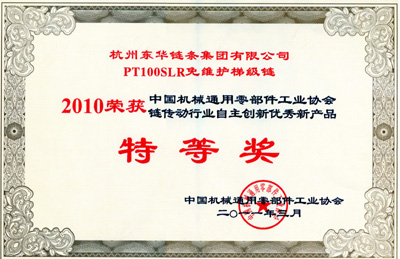 會上,中國機械通用零部件工業協會對2010年自主創新先進企業及自主創新優秀新產品進行表彰。東華集團被授予“2009~2010年度自主創新先進企業”榮譽稱號;東華集團生產的“PT100SLR免維護梯級鏈”和“CL06F2齒形鏈”榮獲中國機械通用零部件工業協會鏈傳動行業自主創新優秀新產品特等獎;另有5個新產品榮獲自主創新優秀新產品優秀獎。董事長助理、黨委書記張世強上臺領獎。