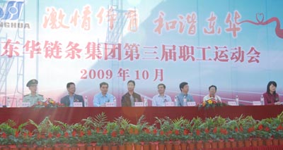 開幕式上,總經(jīng)理張世強(qiáng)致開幕辭。他說,在熱烈慶祝祖國成立60周年的喜慶日子里,我們又迎來了東華集團(tuán)創(chuàng)建18周年和第三屆職工運(yùn)動(dòng)會(huì)的勝利召開。今天,我們19支隊(duì)伍的500多名運(yùn)動(dòng)員,將匯聚成一支蓬勃向上的洪流,在運(yùn)動(dòng)場上切磋技藝,比試身手、互相學(xué)習(xí)、共同提高。本次盛會(huì),將再次展示我們東華人的精神風(fēng)貌,是企業(yè)文化的一次盛會(huì),也是展示自身價(jià)值、凝聚人心、團(tuán)結(jié)拼搏的一次盛會(huì)。必將進(jìn)一步提升企業(yè)文化,弘揚(yáng)企業(yè)精神,為東華集團(tuán)的全面發(fā)展注入新活力。
