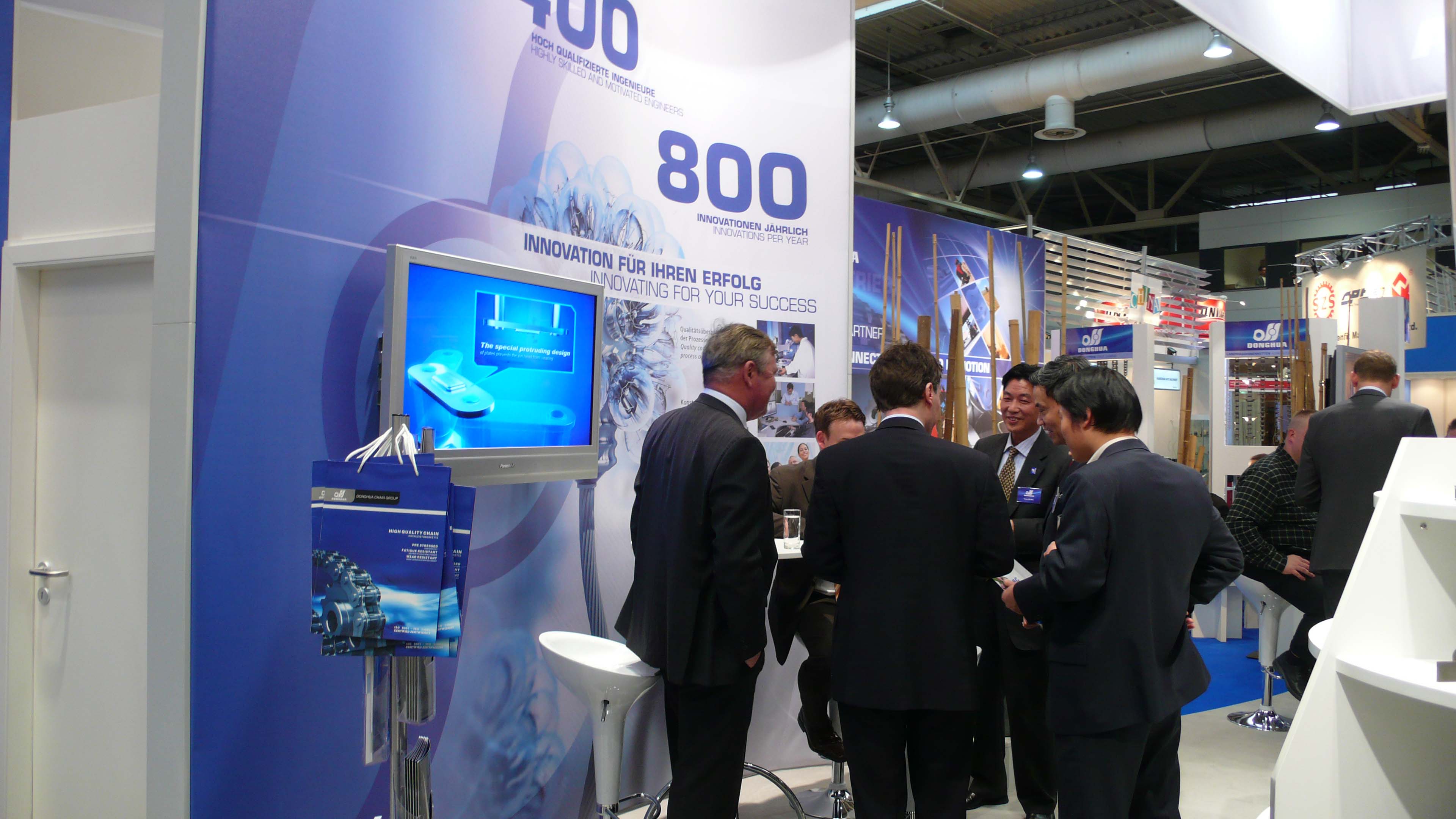 漢諾威展期間,東華展廳云集了來(lái)自世界各地的眾多客商。董事長(zhǎng)宣碧華、總經(jīng)理張世強(qiáng)帶領(lǐng)參展團(tuán)隊(duì)與許多新、老客戶(hù)進(jìn)行了友好洽談,眾多經(jīng)銷(xiāo)商和分銷(xiāo)商紛紛對(duì)東華直接在歐洲建立公司提供倉(cāng)儲(chǔ)式服務(wù)表示歡迎。