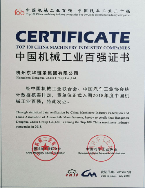 東華鏈條連續四年榮登中國機械工業百強榜