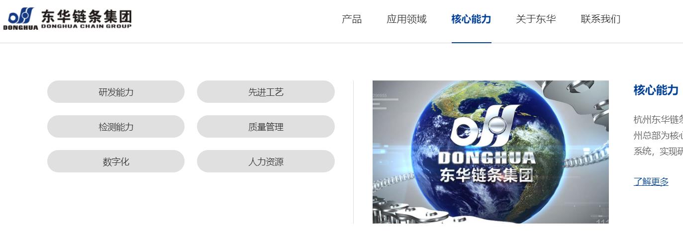 網(wǎng)站包含五大模塊:產(chǎn)品、應(yīng)用領(lǐng)域、核心能力、關(guān)于東華、聯(lián)系我們