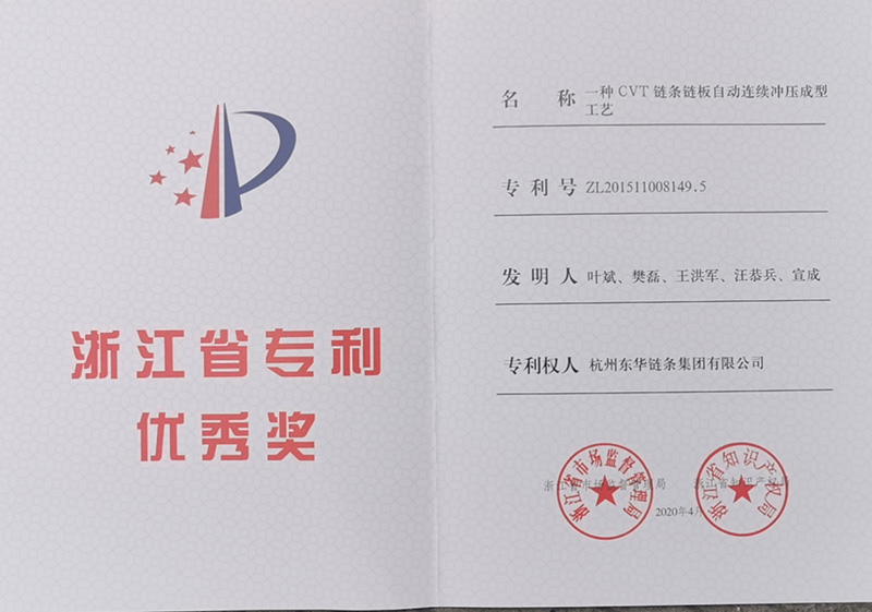 東華鏈條集團“一種CVT鏈條鏈板自動連續沖壓成型工藝”發明專利榮獲浙江省專利優秀獎。本工藝投入使用后,在不增加人工、設備情況下,提升產品質量,同時可省去傳統去毛刺工序,節約加工時間,提高效率,縮短產品加工流程,提高產品質量的穩定性。