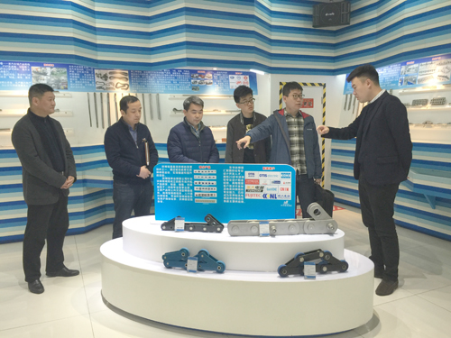 調研中,宣成副董事長、袁副總陪同調研組參觀了產品展廳,向客人介紹了世界鏈條發展史、中國鏈條發展史和公司以細分市場劃分的傳動鏈、輸送鏈、扶梯鏈、板式鏈等十幾大類產品的特色、特點和創新。隨后,陪同客人參觀了傳動鏈事業部、板式鏈事業部、材料零件事業部生產現場,重點參觀了公司投資二千多萬元新建的采用環保新型工藝淘汰原酸洗冷軋線,調研組領導對公司整潔的生產現場、精良的裝備、精神飽滿的員工給予好評。
