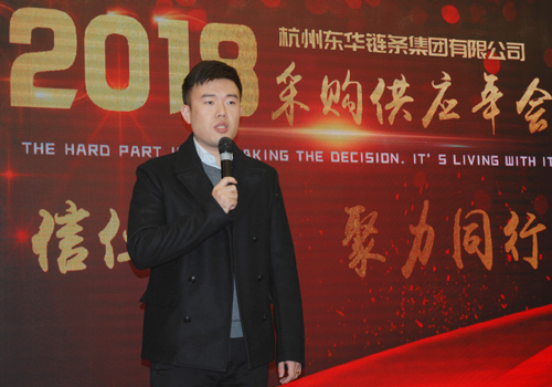 最后,副董事長宣成就戰略采購的資源整合、外購外協件質量等方面作重要講話。他說,2017年,企業新成立了采購部門,目的是整合之前較分散的采購資源,推進優化供應商隊伍。一年下來,在采購降本、供應商整合等方面做出了突出貢獻,給材料成本上漲帶來的工作穩定性發揮了巨大作用。2018年我們要繼續貼近市場,提高有效產出,首先要做好產品質量,其中希望各位供應商要保障外購外協件的質量,理解我們在質量上對你們的苛刻要求。各位供應商要與東華一起,提升為客戶的服務能力,努力提高外購外協件的交付能力,我們才能及時向客戶交付產品,與我們一起為客戶提供最適應客戶的個性化服務,提高客戶滿意度。同時向供應商提出三點建議,一是加強環保建設,保障企業經營安全,為社會責任作貢獻;二是目前社會銀根緊縮,大家要關注企業現金流安全,控制企業對外擔保風險;三是大家要專注制造,堅持做好主業。