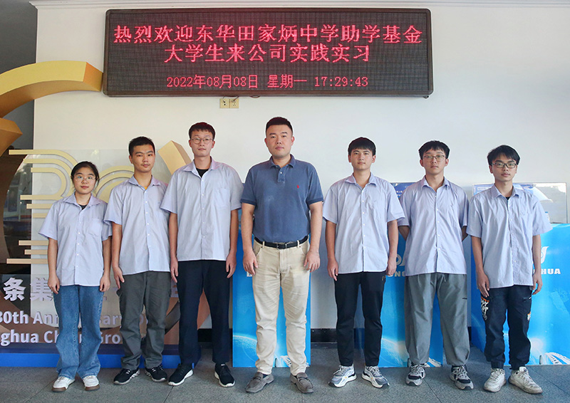 為了讓這些同學畢業后能有更豐富的社會經驗和工作經驗,今年暑假,東華邀請他們到公司實習一個月。公司專人對接,為他們提供了實習、生活的各種保障,并制定實習計劃。內容為了解企業文化、產品的類型、結構、品種、規格、生產工藝、技術標準、質量要求等。期間,大家理論聯系實際,虛心學習,均圓滿完成實習計劃。