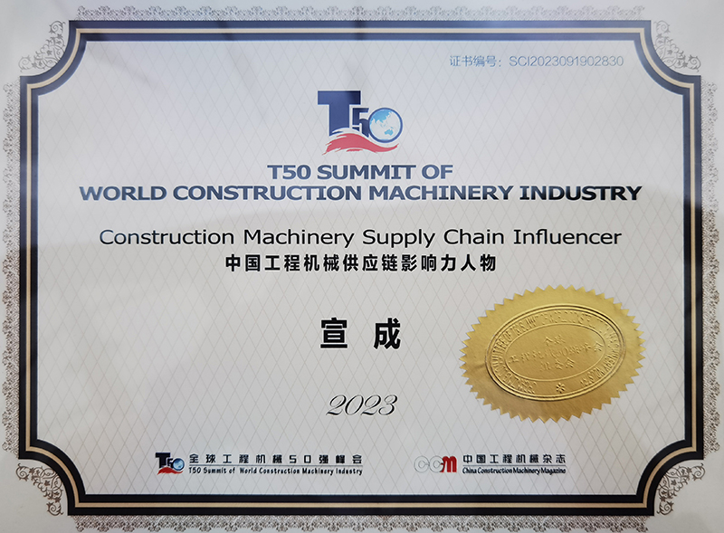 在2023中國工程機械技術(shù)創(chuàng)新峰會暨零部件Prime Suppliers500發(fā)布會上,發(fā)布了《中國工程機械行業(yè)及零部件發(fā)展報告》,邀請了徐工及中聯(lián)副總裁等分享了企業(yè)高質(zhì)量發(fā)展及數(shù)字智能綠色發(fā)展的工作創(chuàng)新。會上發(fā)布了2023全球工程機械制造商50強、中國工程機械技術(shù)創(chuàng)新50人、中國工程機械零部件Prime Suppliers500等。董事長宣成獲評“2023年中國工程機械供應(yīng)鏈影響力人物”稱號。