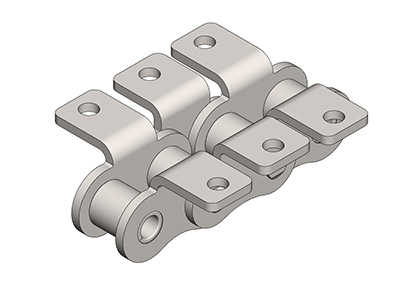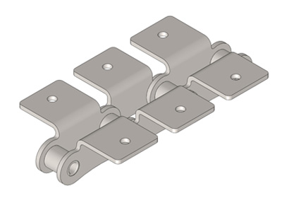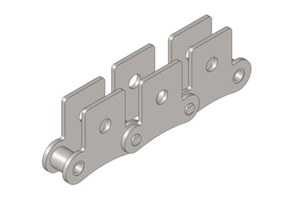 ● 輸送用滾子鏈的附件根據(jù)使用要求設(shè)計(jì)不同的結(jié)構(gòu)形式,具有廣泛性、多樣性等特點(diǎn),其中水平壓彎附板、帶孔直立附板、加長銷軸等附件應(yīng)用較為廣泛。