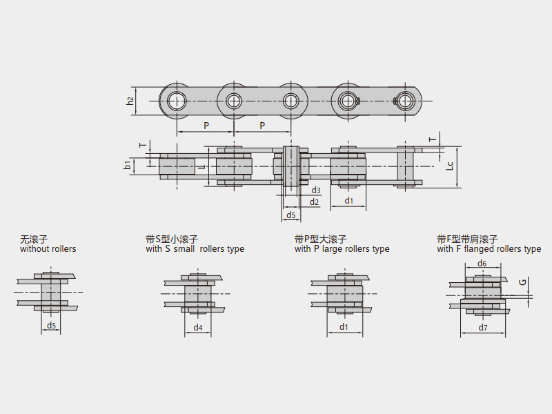 帶S型小滾子帶P型大滾子帶F型帶肩滾子