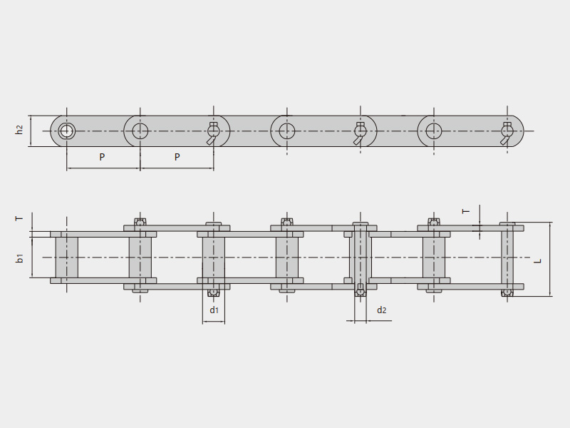 ● 工程用鋼制套筒鏈是由早期鑄造鏈條演變而來,基于鏈條使用功能和長使用壽命的設計,產品具有較大的鉸鏈承載面積,通過熱處理強化保證足夠的抗磨損和抗沖擊性能。