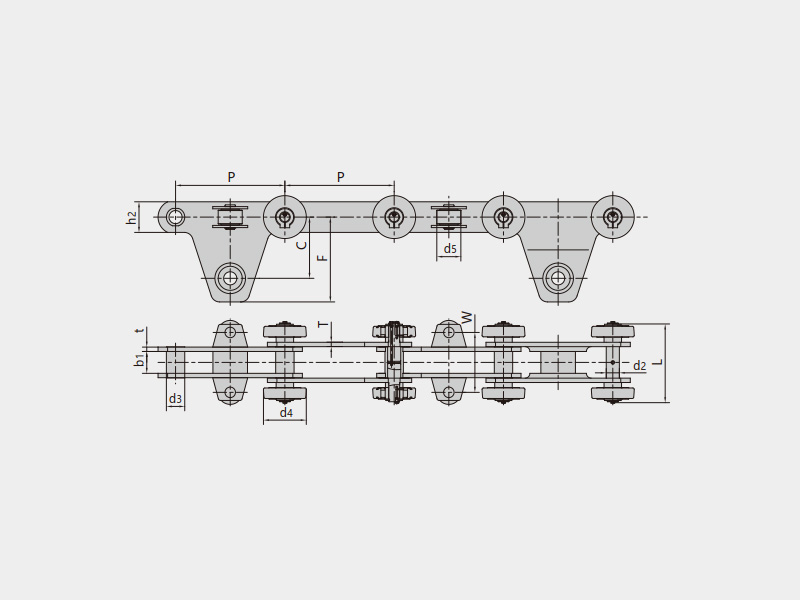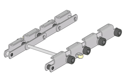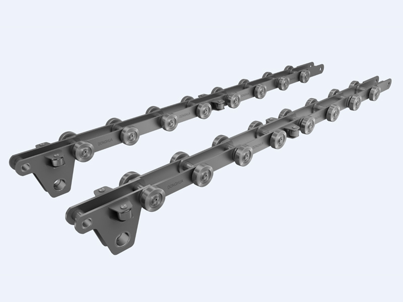 1.擺桿線鏈條:采用滾輪外置式和注油孔結構的設計,實現鏈條平穩運行、延長使用壽命;